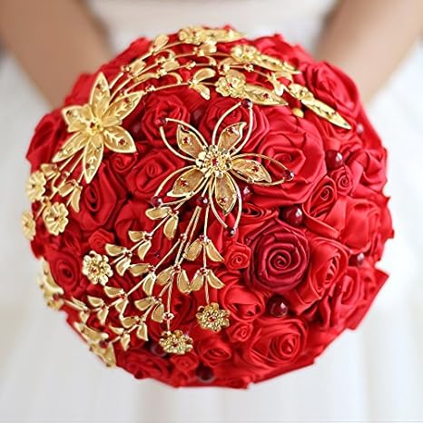 8 Inch Custom Red Gold Brooch Bouquet Red Bouquet Ribbon Rose Rhinestone Bouquet Bridal Bouquet Red Wedding Decoration Diy Gold Bouquet Bouquets Weddings Somoto Cz