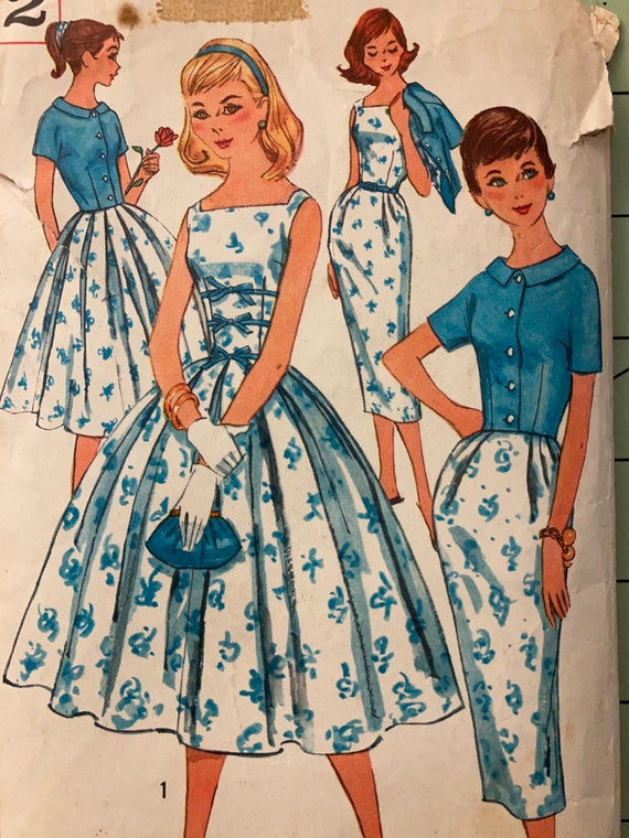 Vintage 50s Simplicity 2052 Square Neckline Dress Pattern Etsy Osterreich