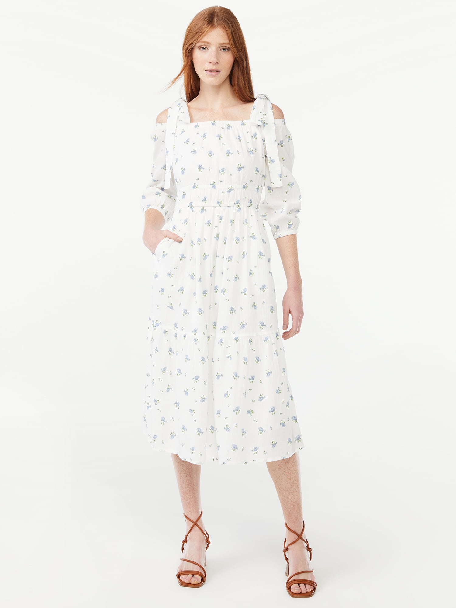 Free Assembly Women S Off The Shoulder Midi Dress With Tie Straps Walmart Com
